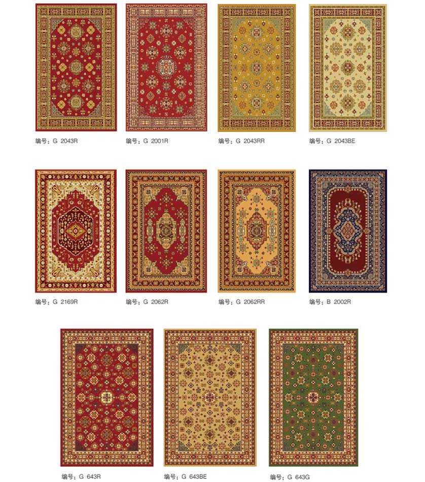 威尔顿地毯具有天鹅绒般的毯面效果,色彩和谐,温馨典雅。具有良好的绒头牢度、外观保持力、清晰的图案装饰能力。一般适宜制作家用块毯和酒店、公寓之客房毯。