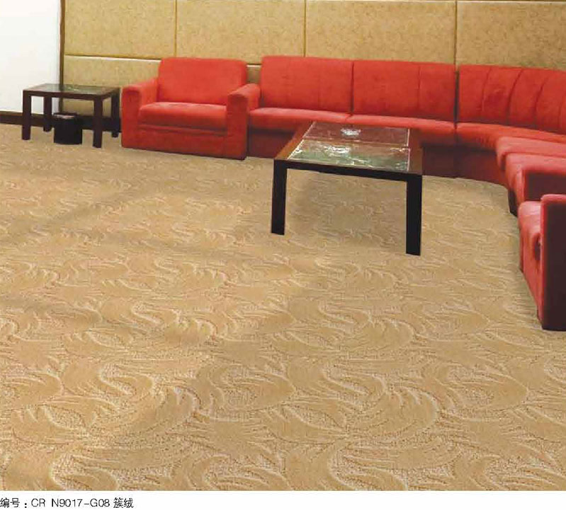 簇绒地毯图案新颖多变、颜色典雅高贵,拥有三层不同绒高的全圈或圈割结合图案,极具浮雕感觉,装饰效果极佳。适用于铺设在高档酒店、办公、轮船等。