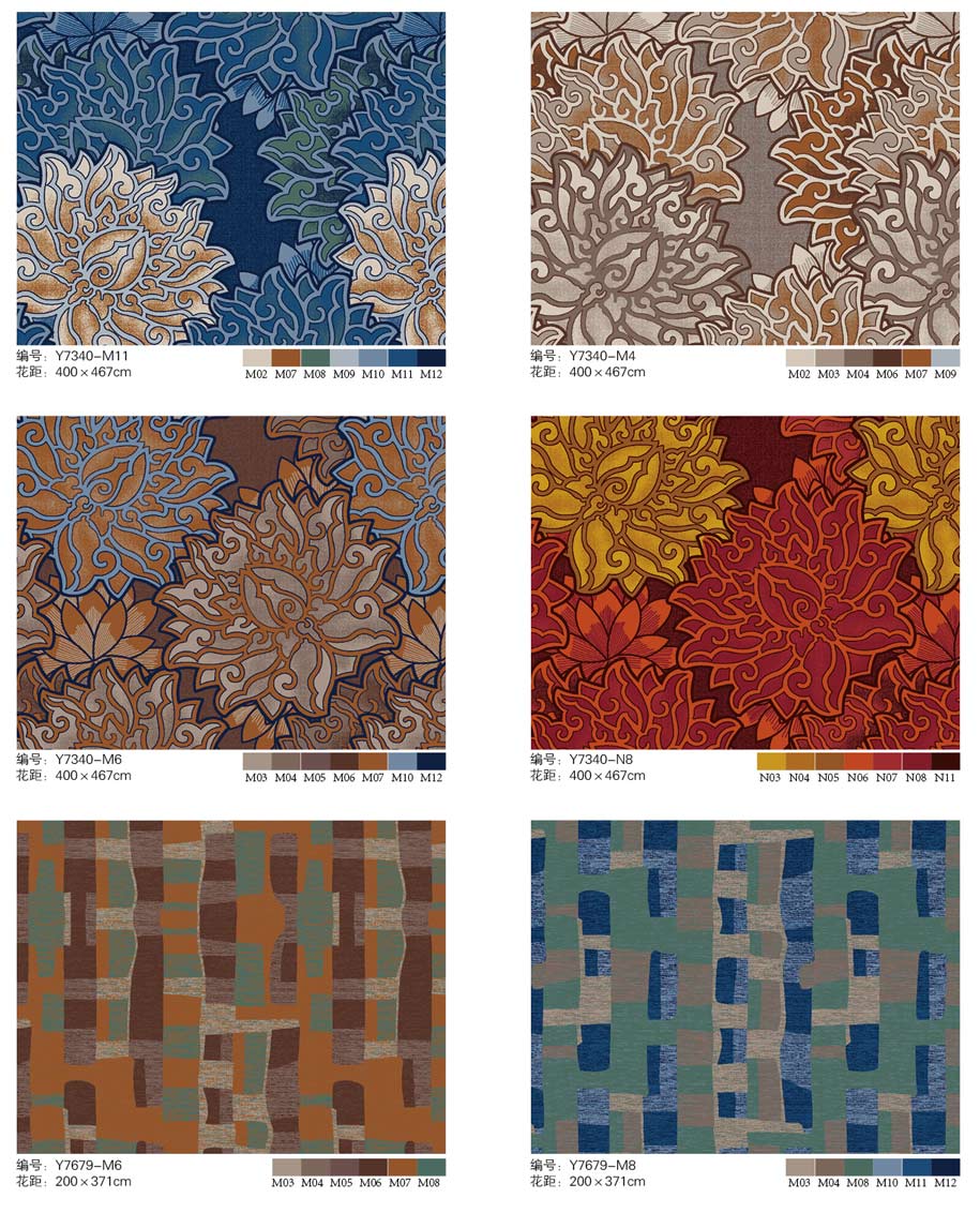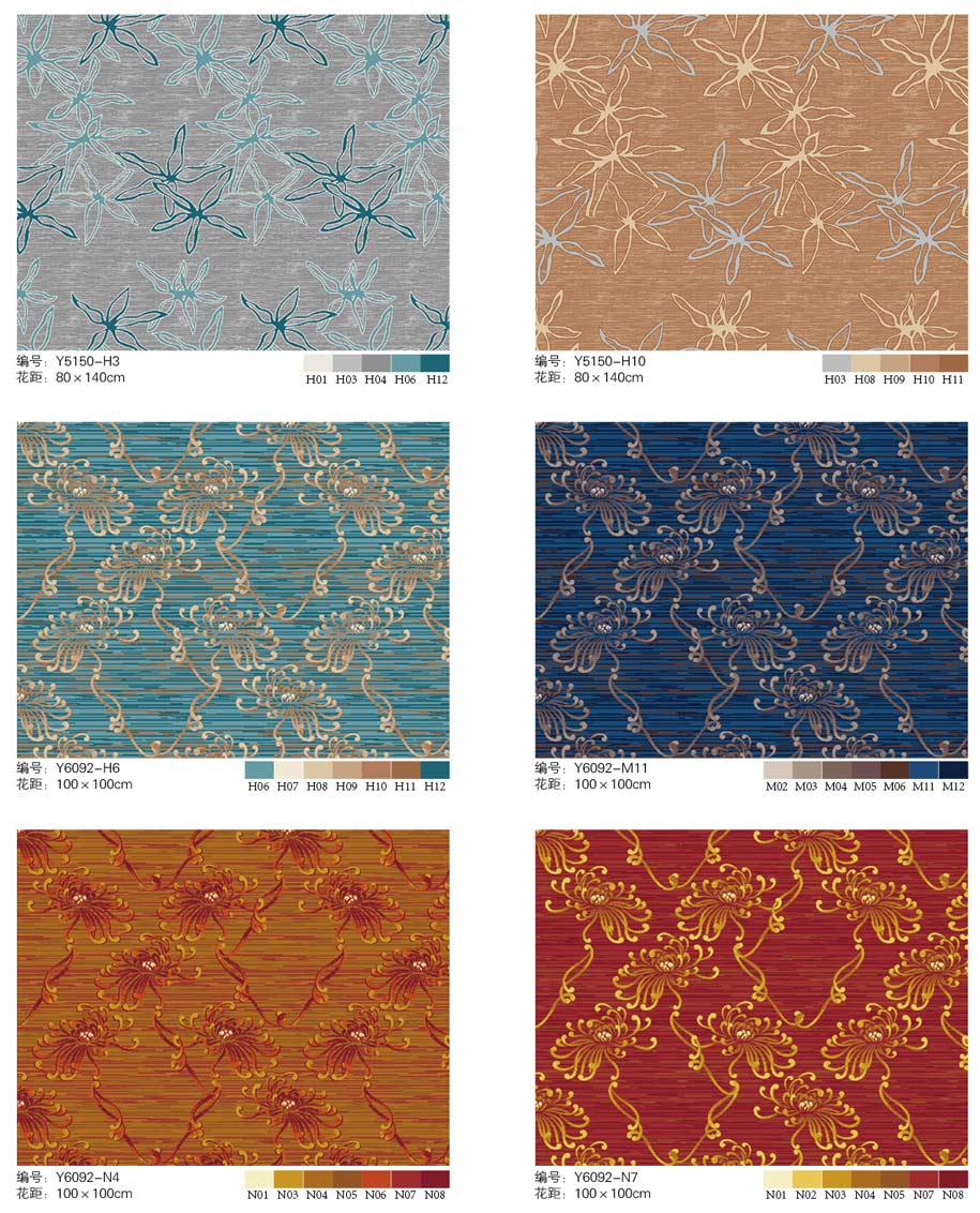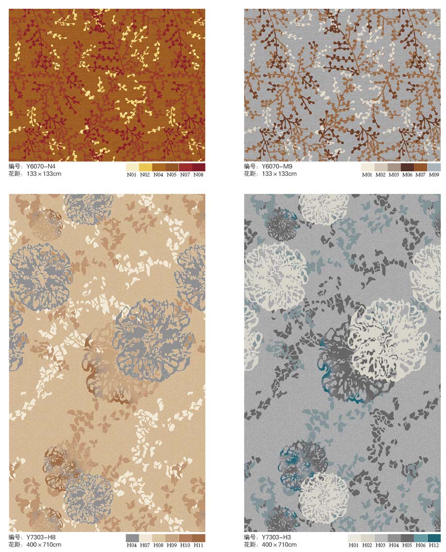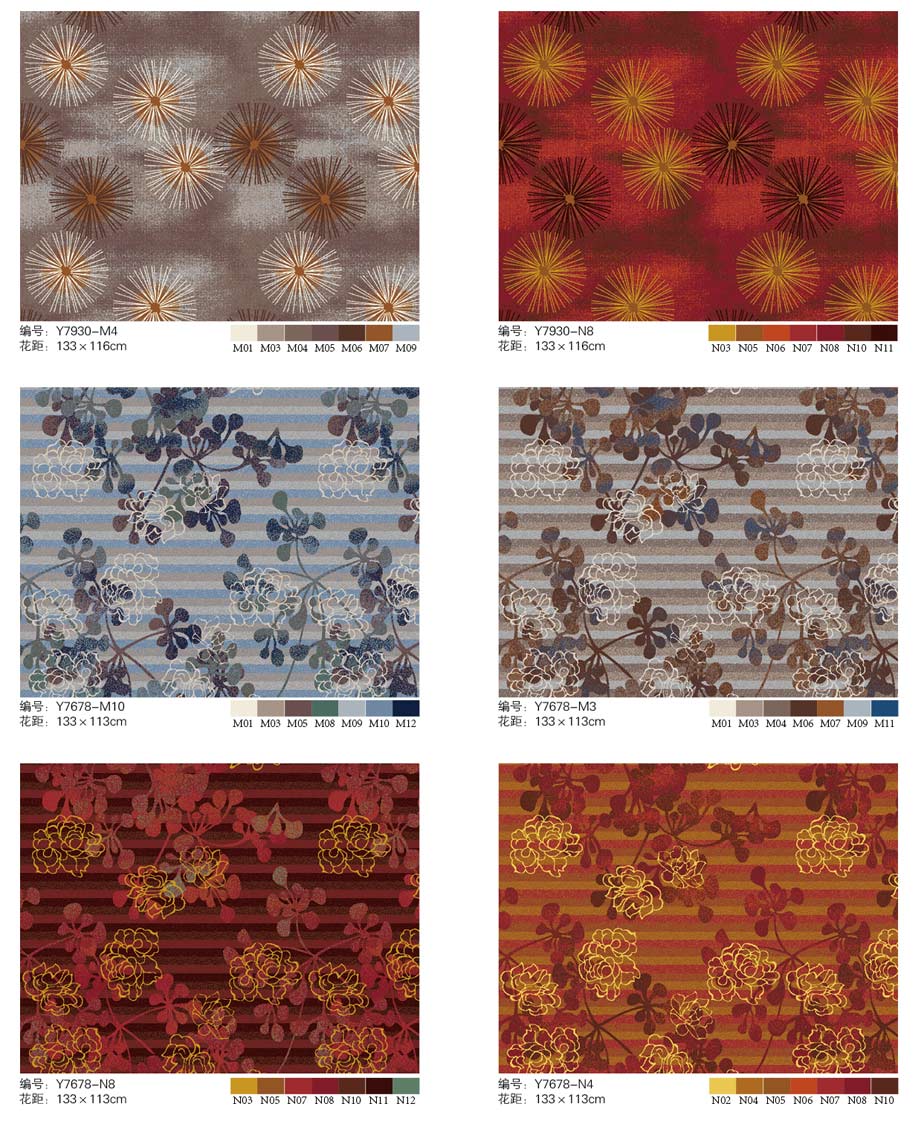 印花地毯以尼龙为原料,具备地毯弹性好、色牢度高、防霉、防虫蛀等特点。适用于各大酒店会议厅、餐厅、咖啡厅等公共区域,并可用于客房、办公室等场所。