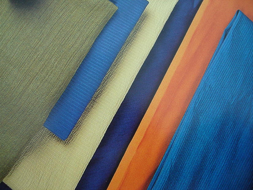 我公司与英威达公司及其他世界著名公司共同开发的新型纤维流行面料,有吸湿排汗Coolmax纤维面料、Coolplus纤维面料 、弹力T400、PBT、PTT系列面料、可降解环保玉米纤维系列面料、牛奶蛋白纤维系列面料、大豆蛋白系列面料、Tactel系列面料、Amico抗菌系列面料、丽赛而面料、竹纤维系列面料等,属于国内领先水平并多次被评为“中国流行面料”
