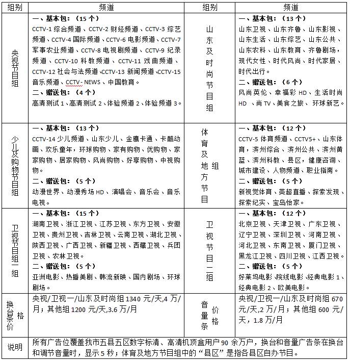 滨州有线电视用户90万户, 2007年底已实现全市有线电视村村通,全市360万人民群众85%的用户看上了清晰的有线电视。用户占比滨城37万 邹平12万 博兴11万 惠民9万 无棣10万 沾化11万。